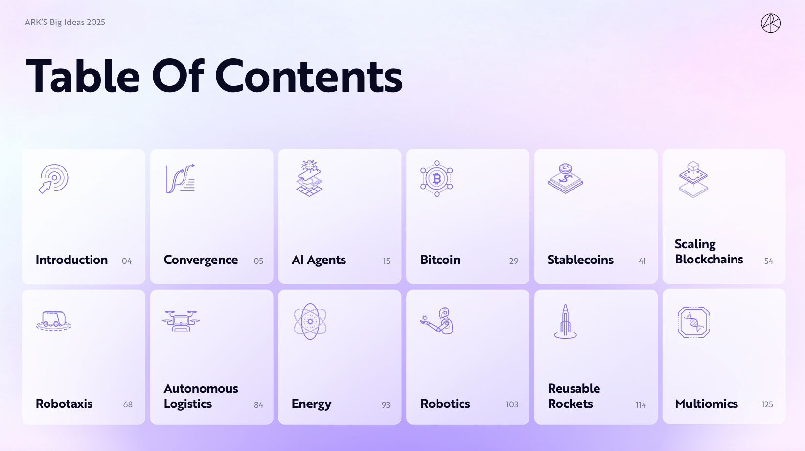 미래 기술과 투자에 관심 있으신가요? 오늘은 혁신적인 기술을 중심으로 2025년 이후의 변화를 전망한 ARK Invest의 최신 리포트, ‘Big Ideas 2025’를 소개해 드리려고 합니다!